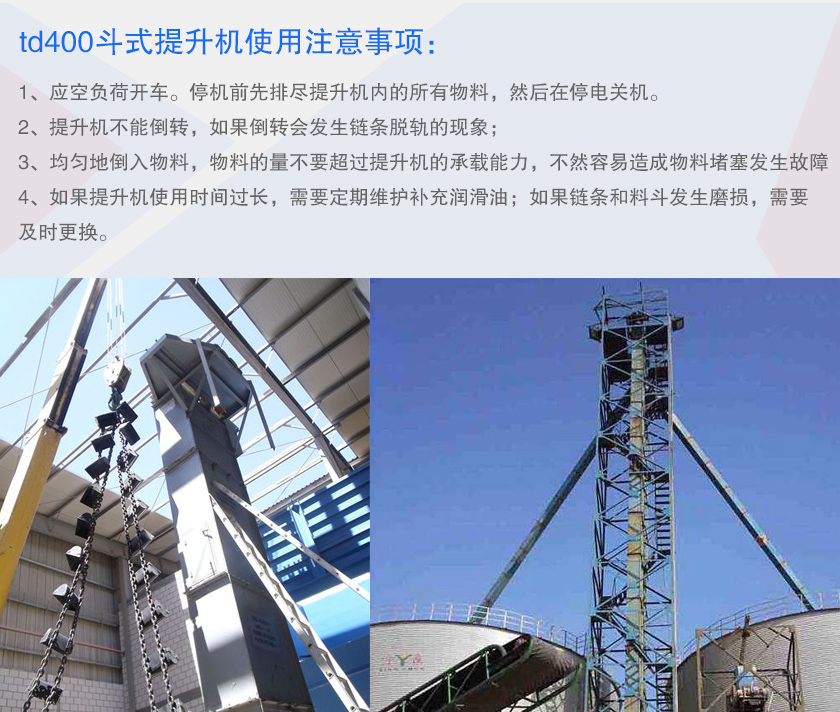 4、如果提升機(jī)使用時(shí)間過(guò)長(zhǎng),需要定期維護(hù)補(bǔ)充潤(rùn)滑油;如果鏈條和料斗發(fā)生磨損,需要及時(shí)