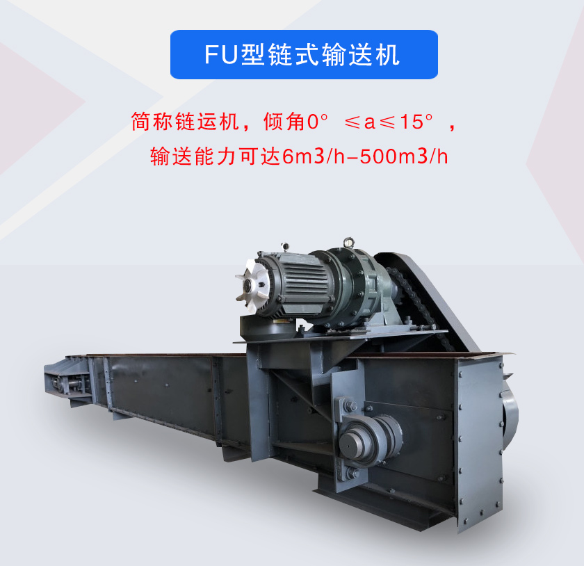 1、FU型鏈式輸送機:簡稱鏈運機,傾角0°≤a≤15°,輸送能力可達6m³/h-500m³/h。