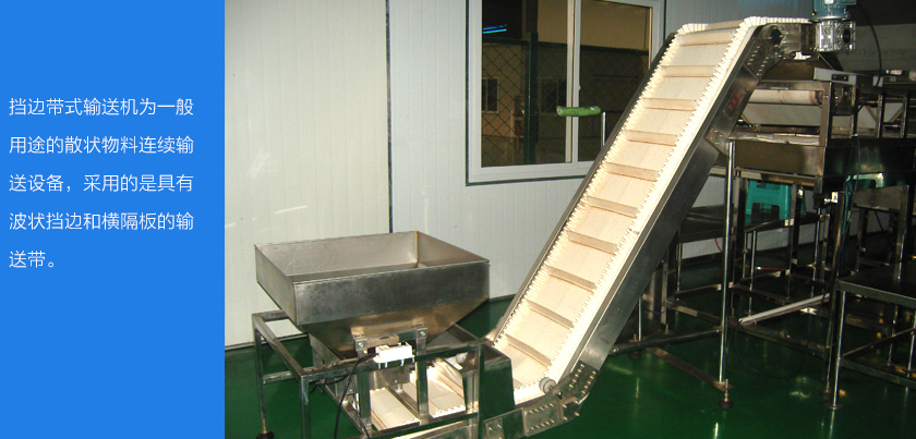 1、擋邊帶式輸送機(jī)為一般用途的散狀物料連續(xù)輸送設(shè)備,采用的是具有波狀擋邊和橫隔板的輸送帶。因此,特別適用于大傾角輸送。