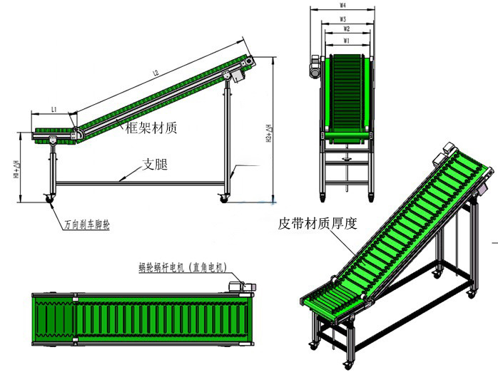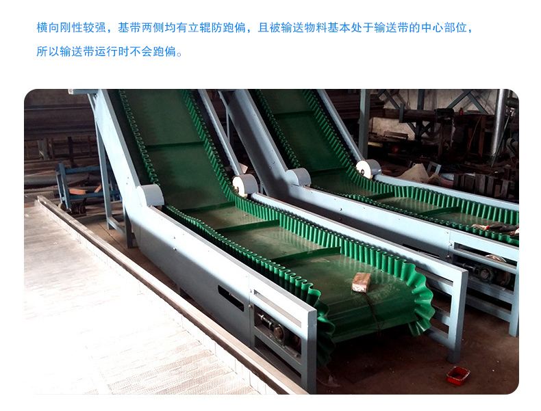 1、波狀擋邊輸送帶和橫隔板設(shè)計(jì),可以防止物料在輸送過程中散落或下滑。