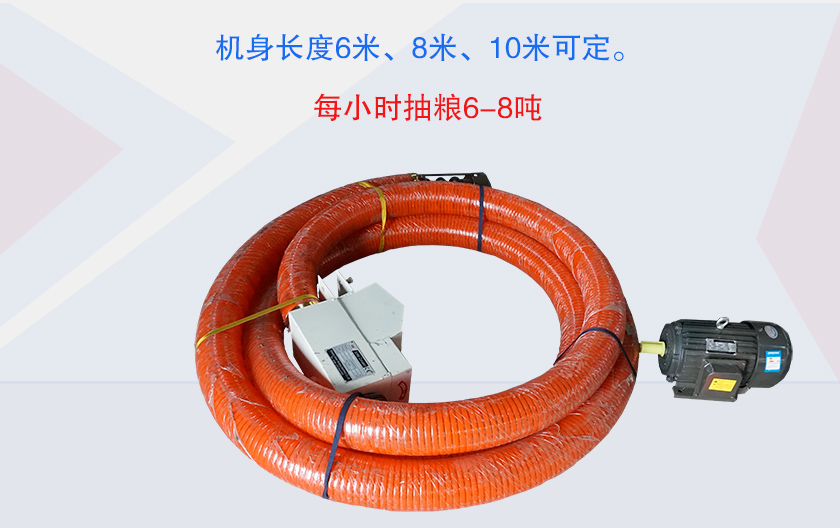 1、機(jī)身長(zhǎng)度6米、8米、10米可定。每小時(shí)抽糧6-8噸,機(jī)器重量60-75公斤。