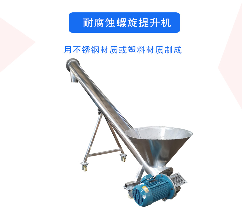 耐腐蝕螺旋提升機(jī)的材質(zhì)和結(jié)構(gòu)特性決定了該設(shè)備在輸送物料時具有耐磨、不易被腐蝕、輸送密閉、移動方便和輸送量大等優(yōu)點。