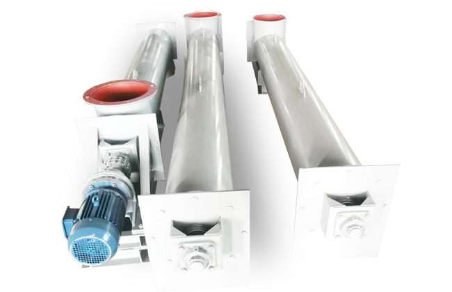 一臺螺旋輸送機通常由螺旋機本體、進出裝置、驅(qū)動裝置三大部分組成。