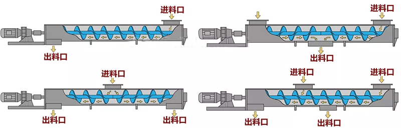 水平螺旋輸送機(jī)有多種進(jìn)料和出料方式,具體的選擇取決于物料的特性、工藝要求以及設(shè)備布局等因素。以下是常見(jiàn)的進(jìn)料和出料方式: