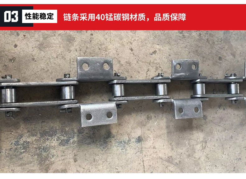 NE斗式提升機(jī)中都采用此種型號(hào)的鏈條,有NE15-NE800型號(hào),NE15斗式提升機(jī)是單鏈,把板鏈用螺栓和料斗直接緊固在一起就行(NE板鏈上有固定的螺絲孔),NE30以上的斗式提升機(jī)都是雙鏈條的,安裝時(shí)在料斗的兩側(cè)平行擺好板鏈鏈條,在斗式提升機(jī)料斗的左右兩側(cè)分別用螺栓把鏈條和料斗逐個(gè)螺緊即可。