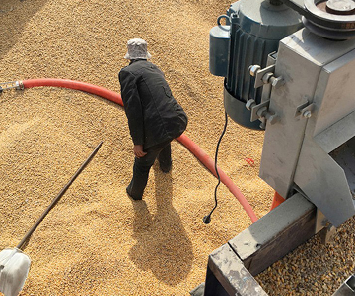 車(chē)載吸糧機(jī)可根據(jù)現(xiàn)場(chǎng)工作量要求采用單管和雙管,雙管設(shè)計(jì)的可在地面來(lái)回推動(dòng),進(jìn)糧側(cè)和出糧側(cè)均輕便自如。糧食點(diǎn)卸、倉(cāng)裝,宜采用雙管。單管設(shè)計(jì)的車(chē)載吸糧機(jī)電機(jī)在出糧側(cè),體積稍大,適合在不經(jīng)常換位的固定場(chǎng)所使用。
