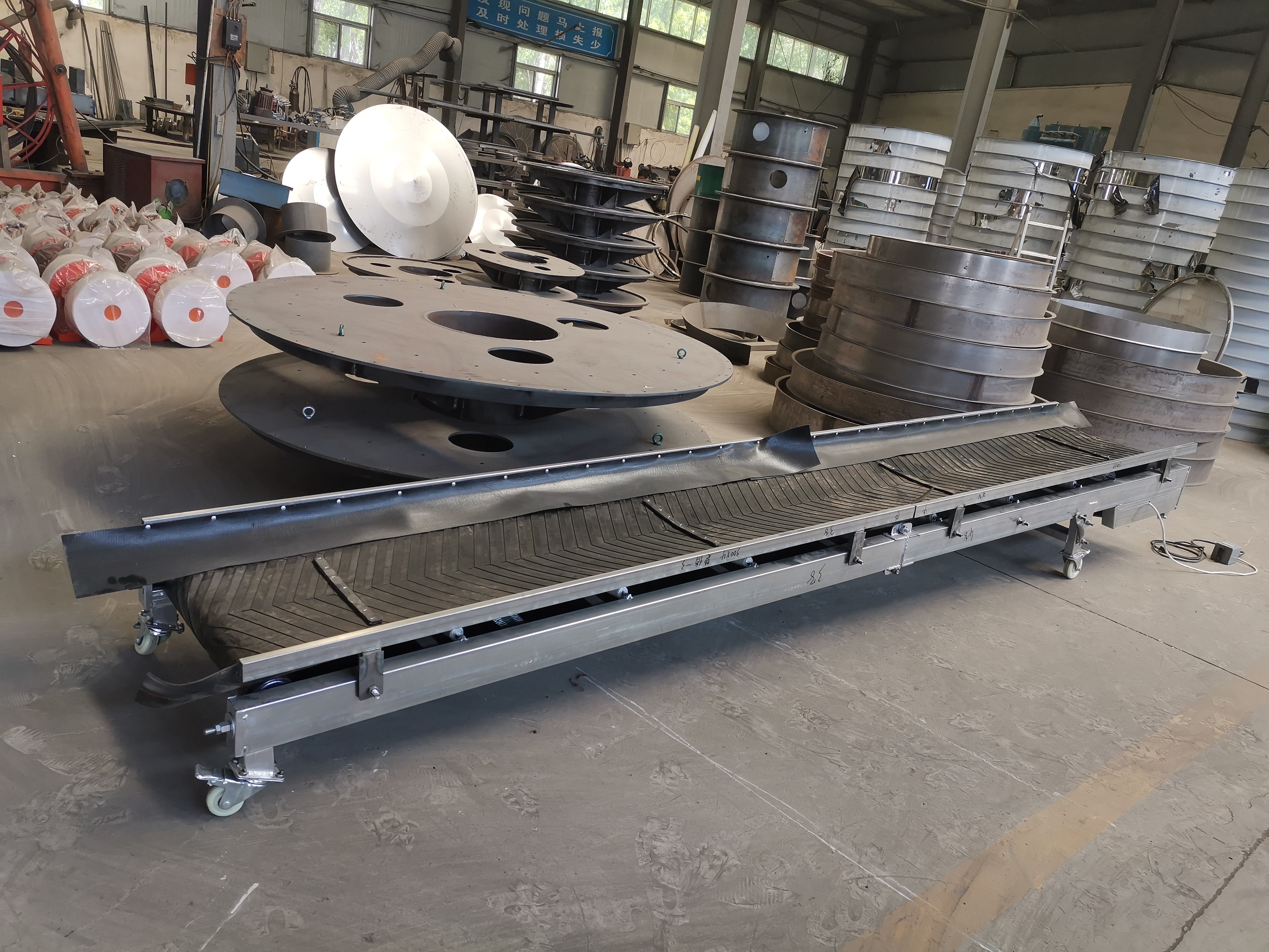 2、水平帶式輸送機(jī)底部裝有萬向輪,可隨處移動。