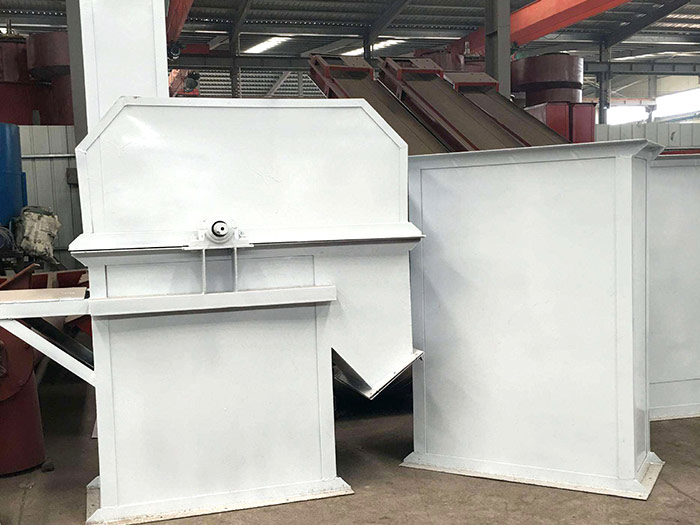 斗式提升機(jī)由殼體、牽引件(輸送鏈)、料斗、驅(qū)動(dòng)輪(頭輪)、改向輪(尾輪)、張緊裝置、導(dǎo)向裝置、加料口(入料口)和卸料口(出料口)。