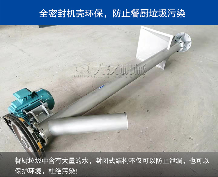 無軸螺旋輸送機采用全封閉輸送和易清洗的螺旋表面,全封閉的結構也可以保障可保證餐廚垃圾在輸送過程中發(fā)生物料飛濺和泄漏問題,從而保護環(huán)境衛(wèi)生和所送物料不受污染、不泄漏。