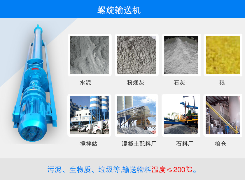 螺旋輸送機(jī)可以輸送可以水平,傾斜或垂直輸送粉狀,顆粒狀及小塊狀物料,同時(shí)具備混合、攪拌、冷卻功能,有軸螺旋輸送機(jī)可以無(wú)粘性的干粉物料和小顆粒物料.(例如:水泥、粉煤灰、石灰、糧等),無(wú)軸螺旋輸送機(jī)適合輸送機(jī)由粘性的和易纏繞的物料。(例如:污泥、生物質(zhì)、垃圾等,輸送物料溫度≤200℃。螺旋輸送機(jī)適用于攪拌站,水泥廠、混凝土配料廠,石料廠,糧倉(cāng)等場(chǎng)合。