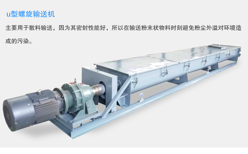 u型螺旋輸送機(jī)主要用于散料輸送,因為其密封性能好,所以在輸送粉末狀物料時刻避免粉塵外溢對環(huán)境造成的污染。